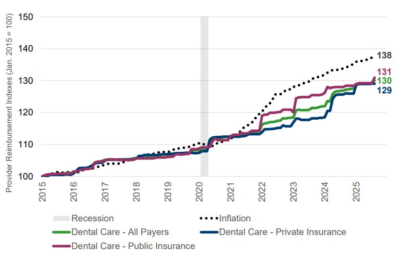 One of the explanations I have been able to find for the weak US market, except the general economic situation of higher rates etc, is that dental policies are falling behind to cover the sharp inflation seen in the US: