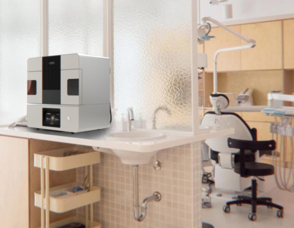 This company claims to have solved what was long an argument for me around 3D-printing machines, that the finishing, curing, and color touches still needed to be done by a technician. Meaning previously 3D-printed products did 80-90% of the product, but the finishing touches still needed to be done by someone. That someone most often does not exist within a dental clinic, so buying such a machine, although not useless, often meant that the products were seen as temporaries for the dentists. For example, I have seen dentists on dental forums explain that they do use 3D-printers to print crowns, but as the quality is so sub-par that the printed crown would be used for that 1-2 week waiting time until the real crown, perhaps produced by MDG, would arrive.